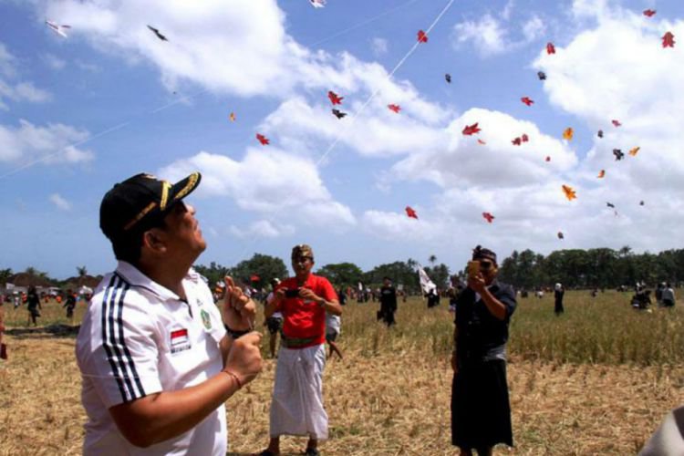 Merdeka.com, Tabanan - 708 layangan tradisional Bali yang terdiri dari 3 jenis layangan, yakni Bebean, Pecukan dan Janggan dari ratusan rare anggon (sekaa layangan) semarakan pagelaran 'Buduh Kite Festival II' yang diselenggarakan oleh masyarakat Banjar Adat Wanasara, Tabanan, Minggu(12/8).