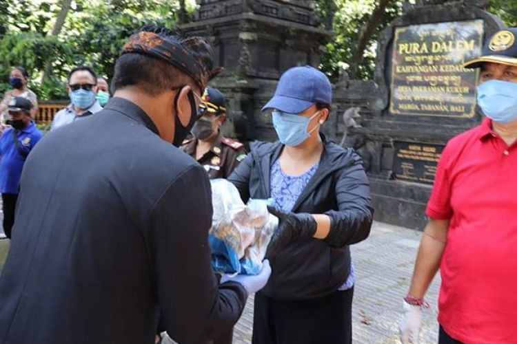 Pemberian bantuan makanan ini dilakukan pada Selasa (5/5), sekaligus Bupati Eka beserta rombongan juga menyerahkan sembako bagi para pedagang sekitar yang terdampak penutupan DTW Alas Kedaton. Dari pantauan dilapangan, Bupati Eka bersama jajaran Forkopimda, Dewan Tabanan dan sejumlah masyarakat setempat tampak berbaur memberikan makanan bagi ribuan monyet di DTW Alas Kedaton.