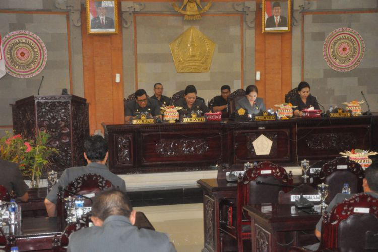 Merdeka.com, Tabanan - DPRD Kabupaten Tabanan menggelar rapat paripurna ke- 5 masa persidangan I tahun 2019 dengan agenda pembahasan laporan Keterangan Pertanggung Jawaban (LKPJ) Bupati Tabanan tahun 2018. Rapat paripurna ini dipimpin oleh Wakil Ketua DPRD Kabupaten Tabanan Ni Made Meilani, Jumat (22/3) di Gedung DPRD Tabanan.