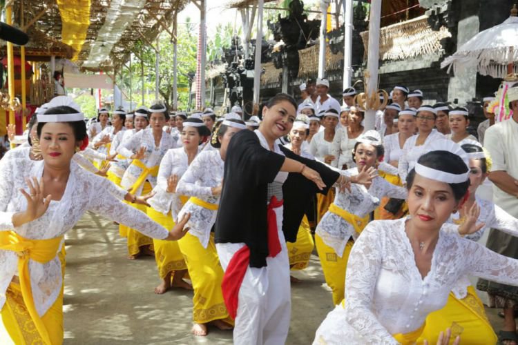Merdeka.com, Tabanan - Dengan gerak gemulai, Bupati Tabanan Ni Putu Eka Wiryastuti 'Ngayah Nari Rejang Renteng' di Pura Puseh lan Desa, Desa Pekraman (DP) Samsaman, Desa Kukuh, Kerambitan, Jumat (30/03) kemarin.