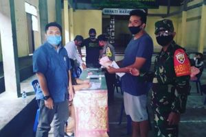 Babinsa bersama Babinkamtibmas Banjar Anyar Pantau Pembagian BLT Dana Desa