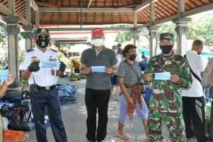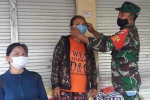 Bantu Pemda Tabanan, Anggota Koramil Bagikan Masker Kepada Masyarakat