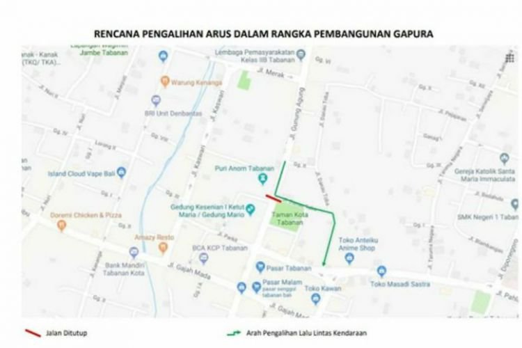 Merdeka.com, Tabanan - Arus lalu lintas dari jalur utara (Penebel) menuju Kota Tabanan akan dialihkan selama 8 hari dari tanggal 23 hingga 30 Nopember 2018. Pengalihan akan dilakukan dalam dua tahap. Tahap I dari jalur utara(Penebel) menuju Kota Tabanan dialihkan menuju jalan Danau Toba tembus di simpang Sakenan.