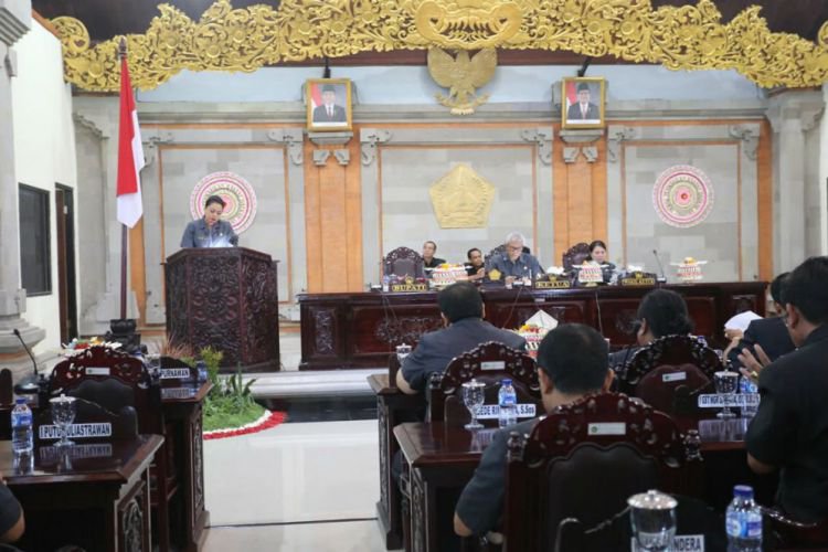 Merdeka.com, Tabanan - Lima Fraksi DPRD Kabupaten Tabanan memberikan pandangan umum mengenai dua buah Rancangan Peraturan Daerah (Ranperda) dalam sidang Paripurna DPRD Kamis (29/3), di Ruang Rapat DPRD Kabupaten Tabanan. Kedua Ranperda tersebut antara lain, Ranperda tentang perubahan kedua atas peraturan daerah nomor 6 tahun 2016 tentang pengangkatan dan pemberhentian perangkat desa dan Ranperda tentang pengelolaan air limbah domestik.