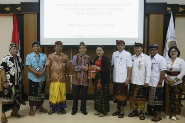 Merdeka.com, Tabanan - Pemerintah Kabupaten Tabanan menyerahkan laporan keuangan pemerintah daerah Kabupaten Tabanan Tahun 2019 kepada Badan Pemeriksa Keuangan (BPK) RI Perwakilan Daerah Bali, Kamis (12/3) di Aula Rapat Kantor BPK RI Perwakilan Bali, Jl. Panjaitan No.2 Sumerta Kelod, Kecamatan Denpasar Timur, Kota Denpasar.