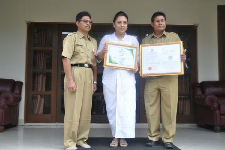 Merdeka.com, Tabanan - Menjelang akhir 2017 Pemkab Tabanan terus diganjar penghargaan atas prestasi di berbagai bidang. Kali ini tidak tanggung-tanggung, Pemkab Tabanan meraih 2 penghargaan sekaligus. Penghargaan tersebut yakni; Penghargaan dari Kementerian Pertanian Republik Indonesia yang diberikan kepada Bupati Tabanan Ni Putu Eka Wiryastuti atas Keberhasilan Meningkatkan Mutu Kakao Fermentasi di Kecamatan Selemadeg.