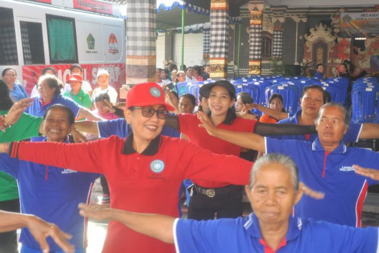 Setibanya kira-kira jam 09.00 WITA di lokasi kegiatan, tim penggerak PKK Provinsi Bali yang dikomandoi Ny. Putri Sustini Koster, disambut oleh para lansia yang melakukan senam kebugaran. Praktis saat itu Ny. Koster ikut berpartisipasi dalam senam tersebut sekitar beberapa menit.