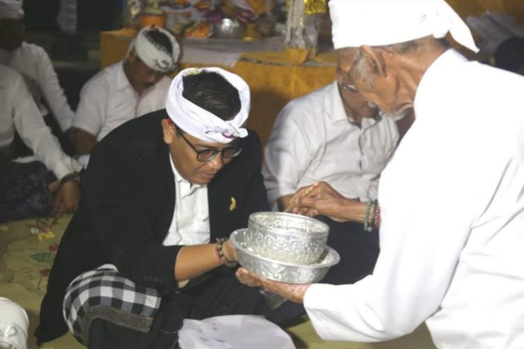 Usai melakukan persembahyangan bersama, Wabup Sanjaya memberikan punia sebagai wujud cihna bhakti kepada masyarakat dan diterima oleh panitia pujawali Pura setempat. Wabup Sanjaya saat itu juga menyempatkan diri bercengkrama dengan pengemon Pura dan masyarakat setempat.