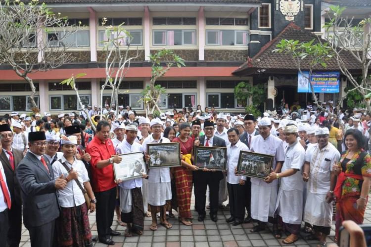 Sehabis kegiatan persembahyangan dan Pengobatan Sekala Niskala secara gratis di Pura Luhur Pucak Petali, Wabup Sanjaya