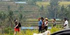 Obama sempatkan diri bersama rombongan buat berkunjung ke kawasan wisata pemandangan sawah berundak Jatiluwih