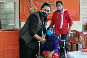 Pada kesempatan tersebut Bupati Eka memberikan bantuan berupa sembako, pampers dan dana pribadi berupa uang senilai Rp3 juta.