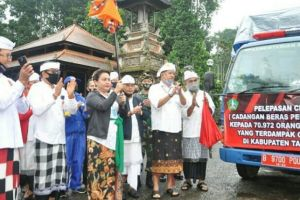 Bupati Eka Distribusikan Cadangan Beras Pemerintah di Pura Luhur Batukau